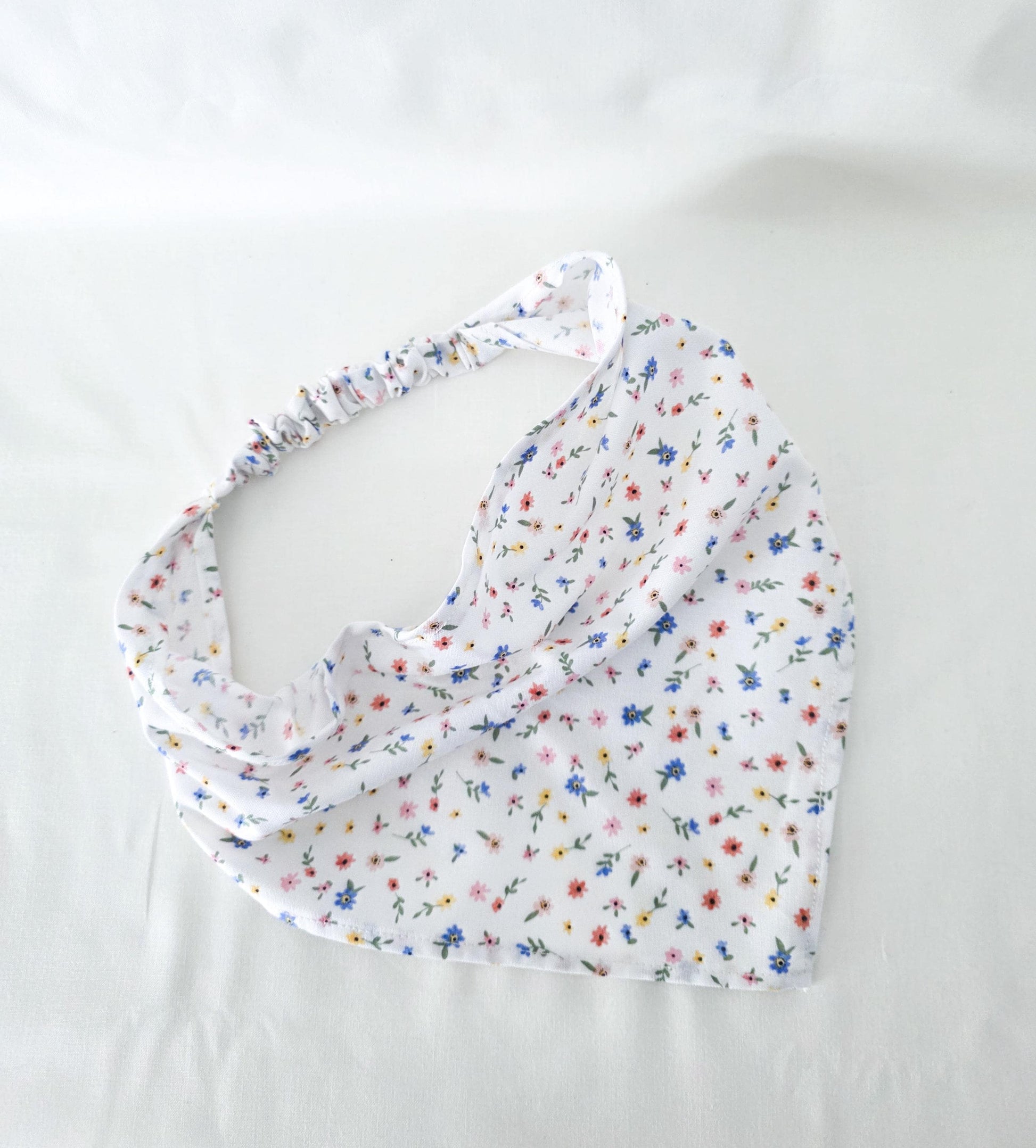 Accessorize your hair with this adorable dainty wildflower print hair bandana! This bandana is perfect for adding something extra to your look and helps keep your hair out of your face. The elastic band makes this bandana perfect for shorter hair as there is no bulky tie in the back!