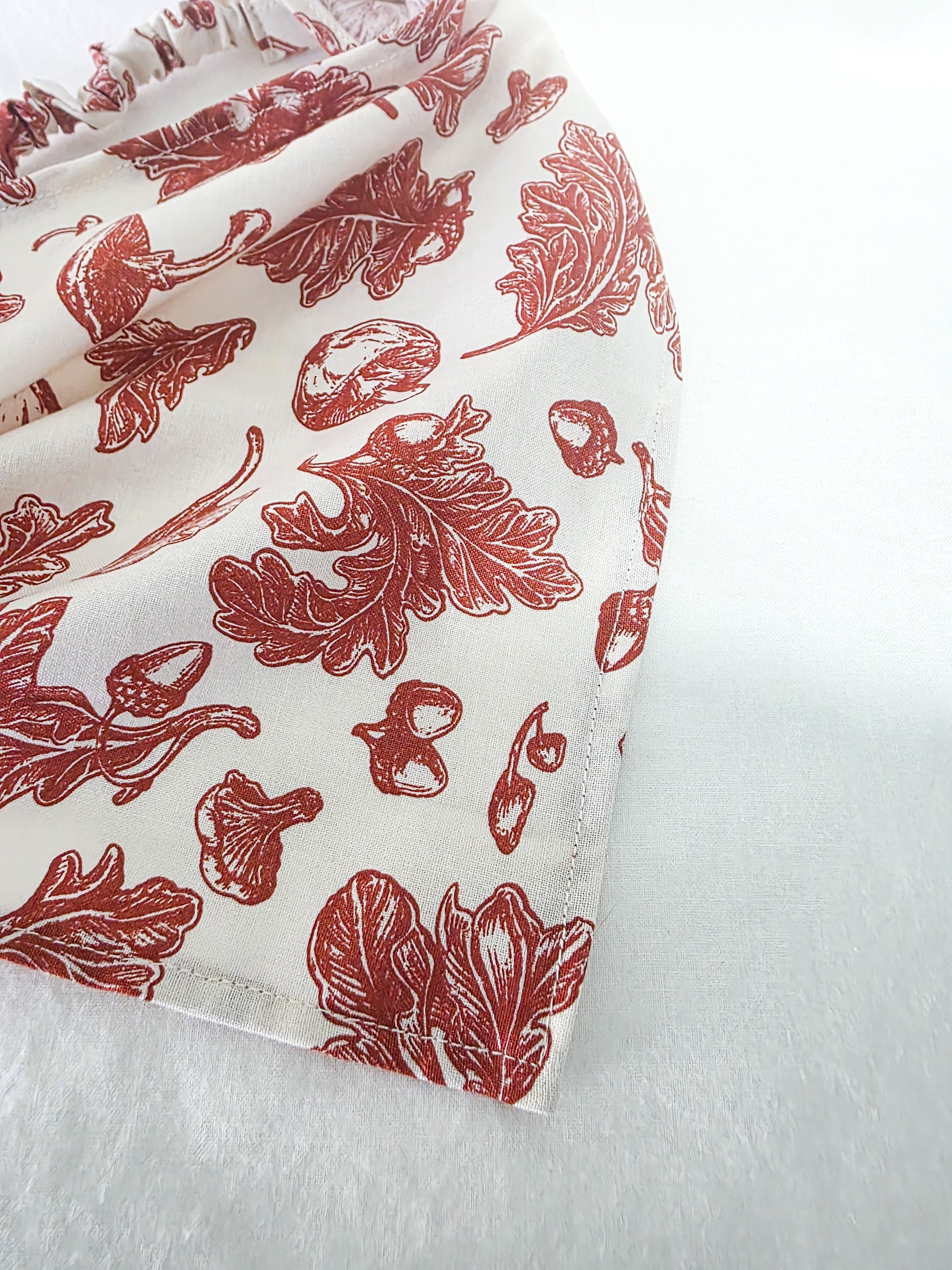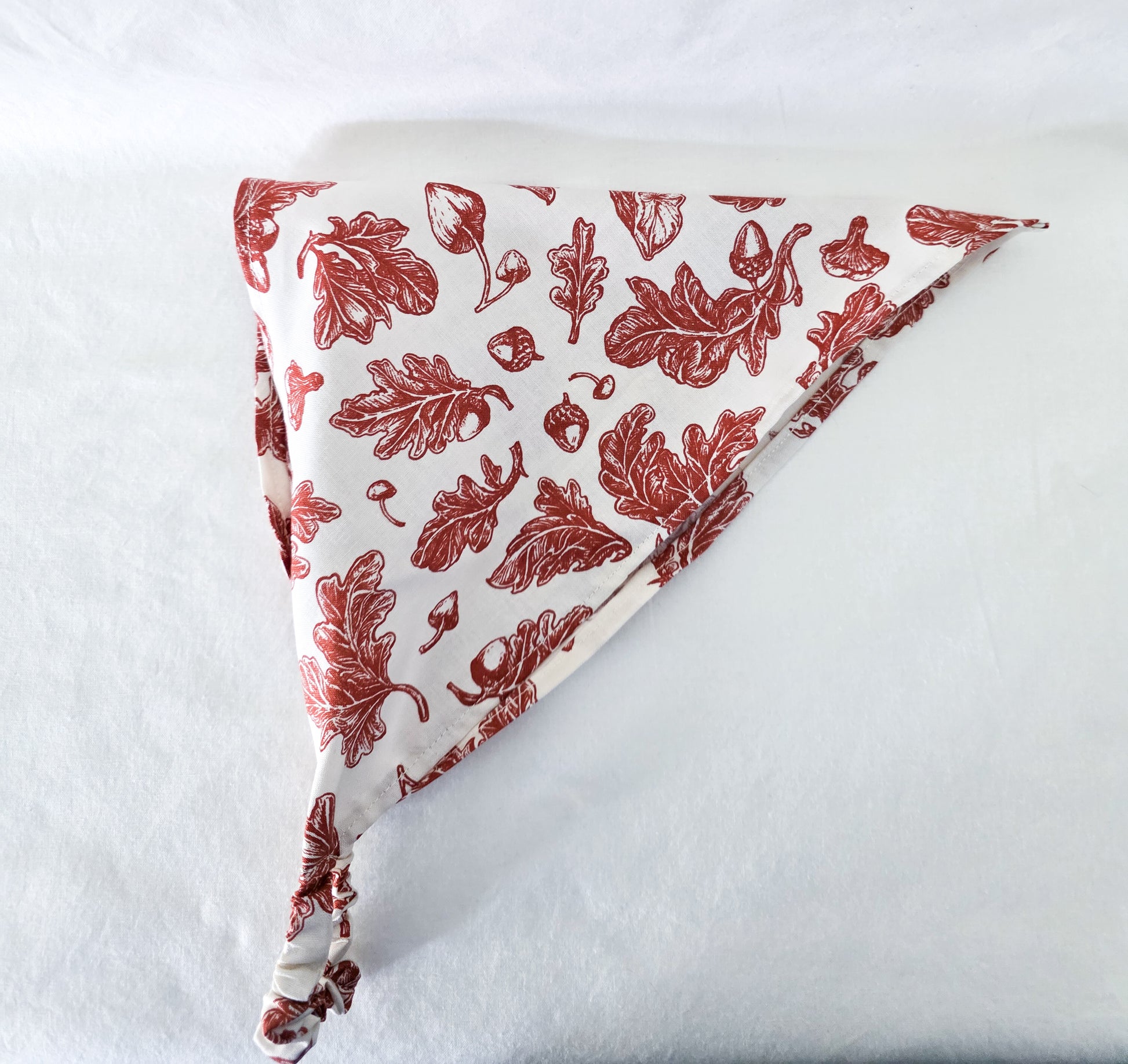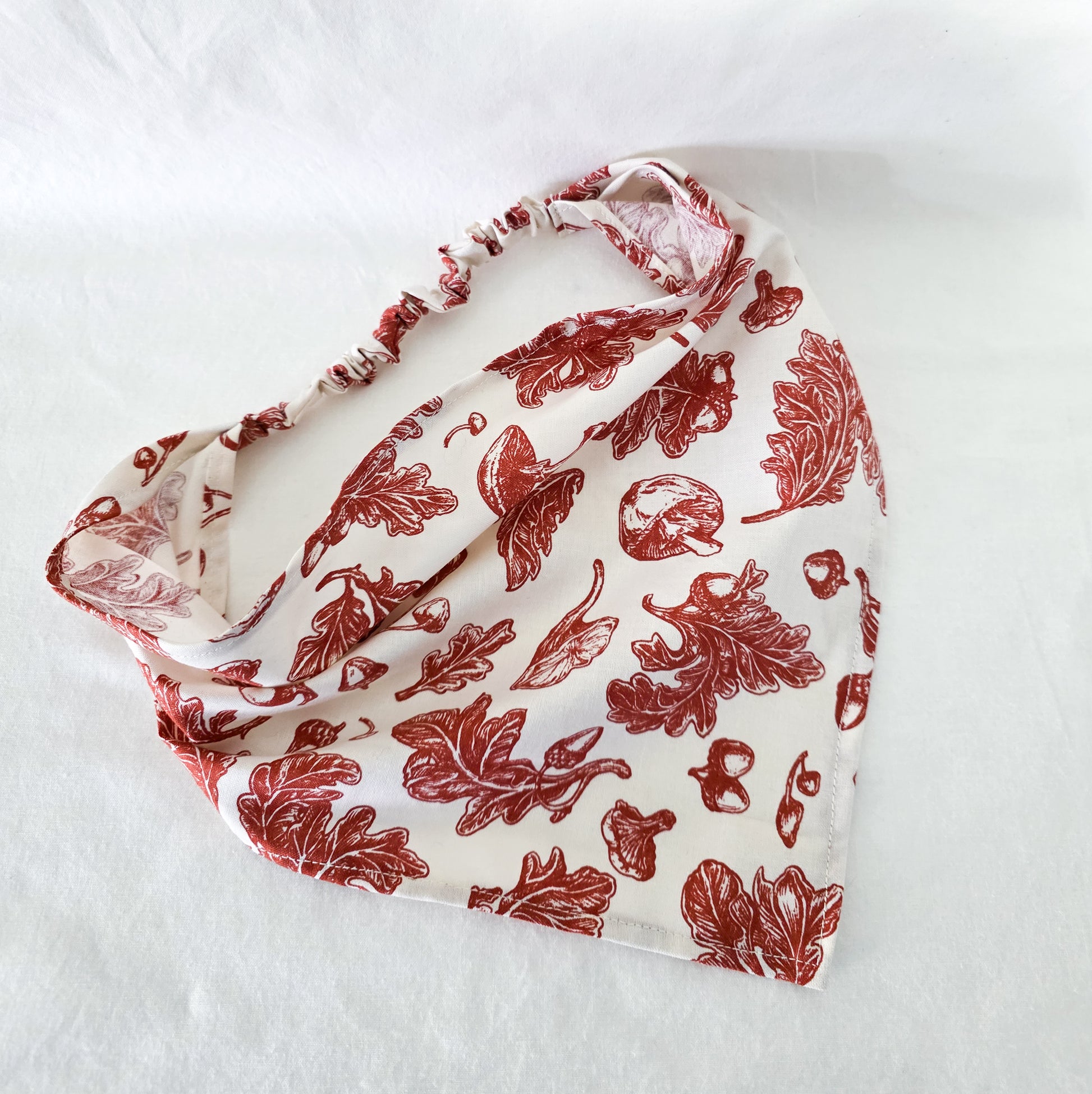 Accessorize your hair with this adorable fall mushroom print hair bandana! This bandana is perfect for adding something extra to your look and helps keep your hair out of your face. The elastic band makes this bandana perfect for shorter hair as there is no bulky tie in the back!